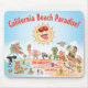 A spectacular cartoon of Southern California – Los Angeles, Anaheim, Long Beach, San Diego. This charming scene has it all – a surfer hangs ten as a mermaid lounges on a rock, a T-Rex roars a challenge, a killer whale leaps out of the water, a muscular beach couple both flex to impress while local creatures enjoy the warmth of the sun, shining high above it all…