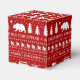 California Christmas Gift Box. Green and white knitted sweater style holiday pattern with California state bear, cute cars, reindeer, and a dog riding a skateboard. A California Christmas: Love, Joy, Peace, Sunshine. Original Xmas gift package for Californians.
