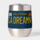 This stemless wine tumbler will take you back in time to the year 1969 with this retro-inspired California license plate design. Bold embossed-look yellow text with the custom tag number "CA DREAMN" pops on the blue contrast. The vintage style lettering, tag stickers and panhead screws bring a nostalgic vibe. Perfect for beach bums and lovers of vintage art, this insulated stainless steel tumbler will bring good vibes and distant memories to your wine time.