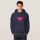 This hoodie sweatshirt features a vibrant hot pink heart containing the bold, rounded, white lower case letters ca, a playful version of the abbreviation for California, the golden state.