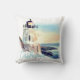 beautiful watercolor landscape painting Throw Pillow represents california landmark of lighthouse by sea during sunset scene.