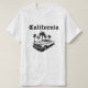 Classic California design of a Lowrider car near a California beach with palm trees.