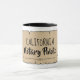 Advertise your notary public business with style and pride. Makes a thoughtful and practical gift for any notary professional who provides legal services to the public. This pen and parchment roll design is presented over a tan scroll papyrus background. Elegant feather quills and ink pots anchor each end of the document. Coffee mug is easily customised by changing "California" to a name, city, phone number, or any other text of your choice.