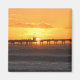 Stunning view of the sun setting behind a peer in California with the fading light highlighting a choppy sea.