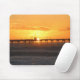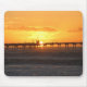 Stunning view of the sun setting behind a peer in California with the fading light highlighting a choppy sea.