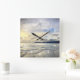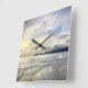 This dramatic coastal Pismo Beach, California, wide, pristine, sandy beach landscape, taken close to sunset exudes peacefulness and solitude. Here you’ll find the surfers waiting for the perfect wave as well as the small birds searching for their evening snack. Recall memories of summer whenever you check the time on this chic, stylish, photography wall clock. Your choice of a round or square clock face. Makes a great housewarming gift!