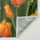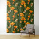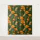 California poppies and moths on dark green tapestry