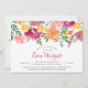 Chic floral baby shower invitation features a top border of watercolor poppy flowers in vibrant summer hues. Personalise with your baby shower details in modern hand lettered style calligraphy script and traditional sans serif lettering.