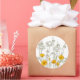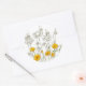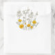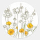 A fun floral sticker decorated with a sepia ink drawing of California poppies, gaillardia and other wildflowers from the summer garden with watercolor accents.