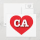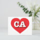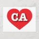 This postcard features a vibrant red heart containing the bold, white, upper case letters CA, the official abbreviation for California, the golden state. The reverse side of the postcard is blank, awaiting your handwritten sentiments or customised text.