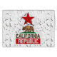 The California state flag design is revisited here on this fine custom gift idea with a larger vibrant red star accented peeling paint decor.