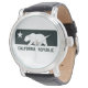 california republic design watch with leather strap, featuring the california republic flag design in black and white. Would make an ideal gift item.