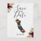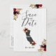 California State Destination Rustic Country Chic with White Barn Wood & Marsala Burgundy Watercolor Floral Arrangements & Boho Feathers Wedding Save the Date Post cards With trendy Hand Lettered Script font! ~ Check my shop to see the entire wedding collection with this design!