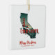 Add a personal touch to your holiday tree with this customisable California Christmas ornament. The front design features the state outline with the Golden Gate Bridge, ocean waves, and festive holiday details. Beneath, you can edit the "Merry Christmas" greeting and add your family name for a unique touch. On the back, there’s space for a favourite family photo, along with names of family members to create a keepsake that will be treasured for years. This ornament is perfect for celebrating your California roots, sending as a thoughtful holiday gift, or collecting as part of your seasonal décor. A festive way to share both family pride and holiday spirit, this ornament makes Christmas extra special.