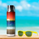 The bottle looks even better in real life. The ice cubes I put in lasts all day! I have my bottle with me all the time. It's summer and having something cold to drink feels amazing. With this bottle I always have something super cold. I have only tried the hot drink once and it lasted a long time as well. The color blue is a navy blue and the white printed on it is vibrant. It printed perfectly. I love my personalized smile water bottle.