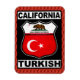 California Turkish design, in the style of a cool American road route sign. The text California Turkish is along the top and bottom, with the flag of the State of California and the flag of Turkey inside the route sign. Great for Californians of Turkish descent, and for ex-pats in the Republic of California!