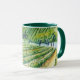 Watercolor painting of the rolling hills full of grapes vines at a California Vineyard.