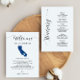 This modern and elegant card is the perfect addition to your hotel welcome bags. Enter the main events and a customised note to help your guests navigate the weekend. The size allows you to enter all the information you need. Everything in this card is editable. To change colours or move elements, click personalise and then "edit using the design tool." Select the element you wish to edit, then use the tools to make the changes.