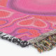 A quality printed throw has its advantages. This is a much finer weave throw than its loopier cousins, and though lighter, it is worth the investment for custom room accessorizing. The back is much prettier than the typical brown, and the fringe on the long sides very vivid, the selvage nicely done. Before photographing, I washed the throw in cold water, delicate, with a thicker woven throw the same size. On tumble dry low, this throw was dry in half the time as the other. This is a very practical quality if you use throws for furniture covers or to wrap up in frequently. The sleekness of the fabric makes it a great layer for accenting or protecting without the feeling of sitting on too much stuff. Perfect for napping or when you feel a light chill coming on. The color printing is beautiful and on this fabric, matched the design and color of my Photoshop image. This is an advantage for blending room fabrics and colors. The fringe on the short sides prints the colors from the design image and therefore varies from the side fringe. I streaked a white fractal line through the plaid pattern to give the illusion of weaving. This printed as crisp as an illusory thread, and put some white in the short side fringe, showing another advantage of print vs loomed- for artistic purposes, line lines, detail, and color integrity can be planned and preserved. My loomed throws have color limitations and more of a needlepoint texture. Print throws reproduce an exact image. The throw felt a little stiff straight out of the package, but this went away in the first delicate wash. Of course I searched the wash water for ink or bleeding and there was none.