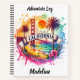 California features the Golden Gate Bridge, palm trees, and sunset. Lively splashes of colour capture the essence of a sunny coastal paradise, inspiring wanderlust.