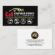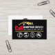 A black cover features a gold roof and border line design. Here lies the red caption "CALL" which you can change alongside the business name "HANDYMAN SERVICE" and its contact details. Near the base is a handyman tools design which can represent some of the services that you offer. e.g. the drill-measuring tape can represent home repairs, the brushes for painting-remodeling etc.