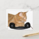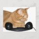 orange/ginger tabby cat with an old telephone receiver as if talking to someone or waiting for that special call. A good reminder to keep in touch for cat lovers