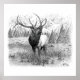 Black and white pencil drawing of a determined, strong elk making his claim on new land. The Call of the King is dedicated to all those who followed their dreams or have a dream to go to a new land. This would include my friend Andy and his family which now enjoy the reality of, 'Call of the King', scenery right in his own back yard.