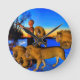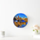The clock did not take as long to arrive as I thought it might and was extremely well packaged. I didn't do the measurements so I didn't realize it is a little smaller than the average clock but that does not matter (just make sure you check if that's important to you).It is really nifty! It seems very solid and well made not flimsy at all. It has been going well and has kept good time in its few weeks on my wall. Nice product. Gets noticed too! Nicer in real life than the picture but true to the picture
