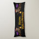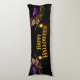 Double the magic and double the cuteness with this magical twin witch kittens Halloween body pillow this extra long decorative cushion features two adorable tabby kittens and purple which hats and capes soaring toward the centre on their broomsticks with glowing lanterns perfectly balanced with a bold vintage style happy Halloween greeting in the middle this high detail illustration is set against a deep black background from maximum pop whether you're decorating a guest room a nursery or your own sofa. This whimsical feline design brings a cozy enchanted touch to your haunt season home decor