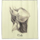 Two lovely calla lilies resting on a single leaf are the subject of the drawing done in charcoal pencil on a creamy yellow paper that embellishes this easy to personalise shower curtain. Light and shadow combine to accentuate the soft curves of these beautiful blossoms. The calla lily is also known as zantedeschia and in some areas it is used as an Easter lily.