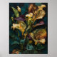 This artwork depicts a stunning contrast between the dark background and the luminous calla lilies, creating a dramatic and captivating effect. The calla lilies symbolise purity, faith, and devotion, as well as passion and mystery. The artist has skilfully captured the delicate curves and textures of the flowers, highlighting their graceful elegance and beauty.