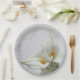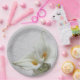 Calla lilies on textured background paper plate