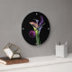 Elegant wall clock features calla lilies on a black background.
