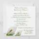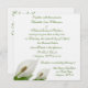 Beautiful wedding invitation is white and features two white calla lilies in the bottom left hand corner of the invitation front. The pretty calla lily design is simple yet elegant. The text is in green script font and can be customised with your own wording. The reverse side of the Calla Lily Flowers White Wedding Invitation has one big calla lily flower in the bottom centre and in the area above and to the left is a place for you to customise with the wedding couples names in the same green script font as on the front. Matching Calla Lily Flower White Wedding RSVP Response cards, postage stamps and save the date cards also available!