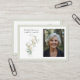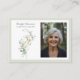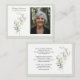 An elegant memorial photo funeral memorial prayer cards featuring white calla lilies and sage green eucalyptus leaves. You can customize with your chosen prayer, psalm or poem. The serene, natural aesthetic of eucalyptus leaves provides a calm and beautiful theme for funeral services. The white calla lilies represent beauty and innocence, while eucalyptus conveys healing, strength, and purification, making this combination popular for sympathy to offer peace.