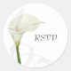 This sticker has an image of a single white calla lily with a pretty flourish in the background, and is perfect for your wedding invitations, save the date stickers, RSVP, and more.
