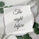 Get Yourself Some elegant and beautiful Decorated napkins for your Rehearsal Dinner. The napkins come in a calligraphy modern style with ~THE NIGHT BEFORE~ font. Also, you can customise the name of the bride and the groom. The napkins feature glitter with Eucalyptus and confetti to make them look so beautiful and elegant.