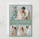 Modern Trendy Calligraphy Script 4 Photo Family Photo Collage Merry Christmas Holiday Card - Sage Green Background