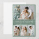 Calligraphy 4 Photo Merry Christmas Sage Green Holiday Card
