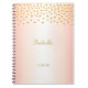 Gold metallic look confetti on rose gold Spiral Notebook. Name and date ready to be personalised.