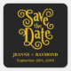 Calligraphy Black Gold Wedding Save the Date Square Sticker