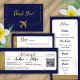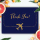 Calligraphy Blue and Gold Boarding Pass Wedding Thank You Card
