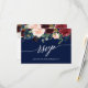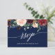 Calligraphy Burgundy Floral Blue Wedding RSVP Meal Card