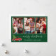 Modern Calligraphy Script 3 Photo Family Photo Collage Merry Christmas Card includes Watercolor Vintage Red Truck with Tree - Forest Green Background