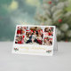 Modern Calligraphy Gold Foil Script 5 Photo Family Photo Collage Merry Christmas Folded Greeting Card includes Watercolor Christmas Holly Berries and Greenery