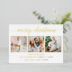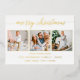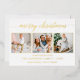 Modern Elegant Calligraphy Gold Foil Script 3 Photo Family Photo Collage Merry Christmas Card includes Your Photos in Gold Foil Frames with a Dusty Blue & Snowflakes Back