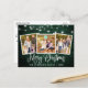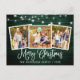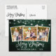 Modern Fun Calligraphy Script Merry Christmas 3 Photo Holiday Postcard - Rustic Country Green Wood with String Lights