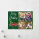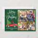 Calligraphy Christmas Red Truck 3 Photo Green Holiday Card