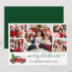 Calligraphy Christmas Red Truck 5 Photo Green Holiday Card