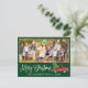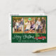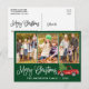 Modern Fun Calligraphy Script Merry Christmas 3 Photo Holiday Postcard - Watercolor Vintage Red Truck with Christmas Tree - Forest Green background